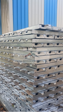 The Dog Ear Anti-Skid Steel Plank from Faith Services Pvt. Ltd. is engineered to provide the safest, most stable, and most reliable working platform for your construction projects. As a critical component of system scaffolding, this plank ensures optimal worker mobility and security at height.